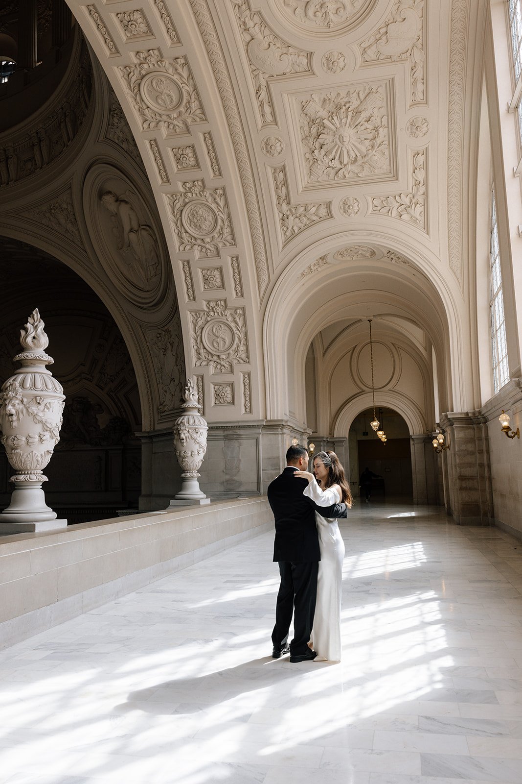 We move naturally through City Hall, using light and architecture as we go. I guide gently and leave space for real interaction - no stiff posing, no rushing.