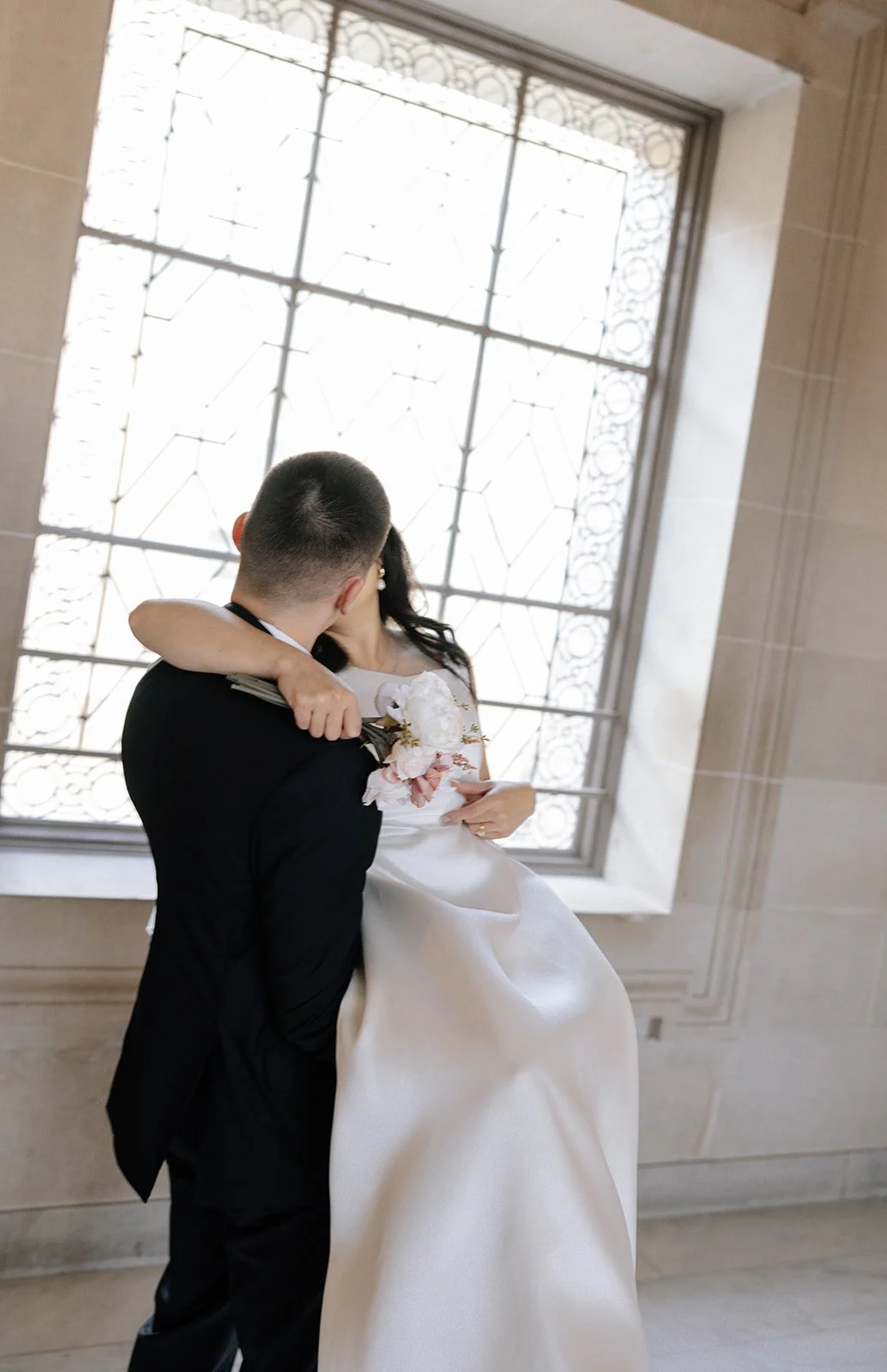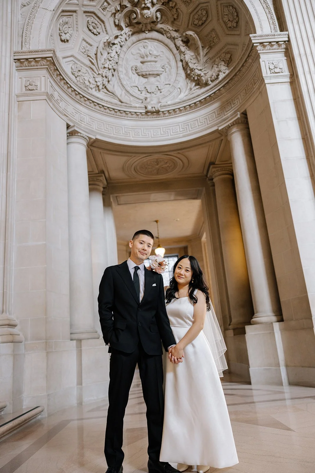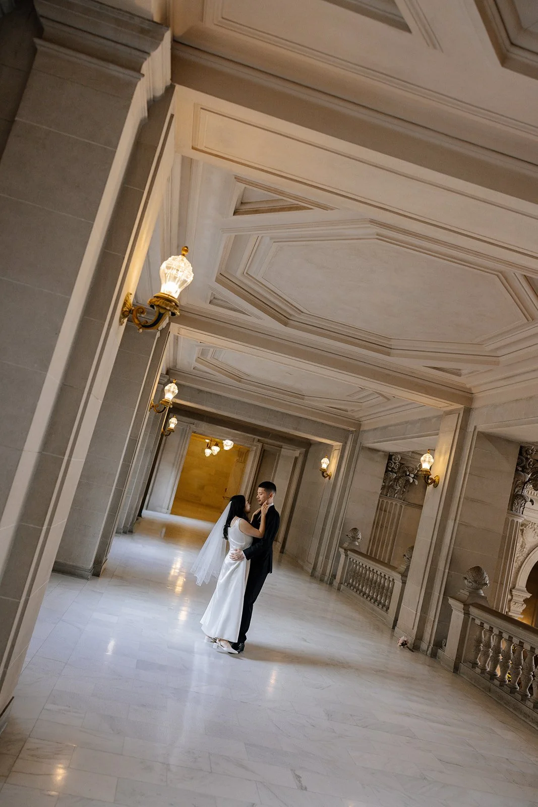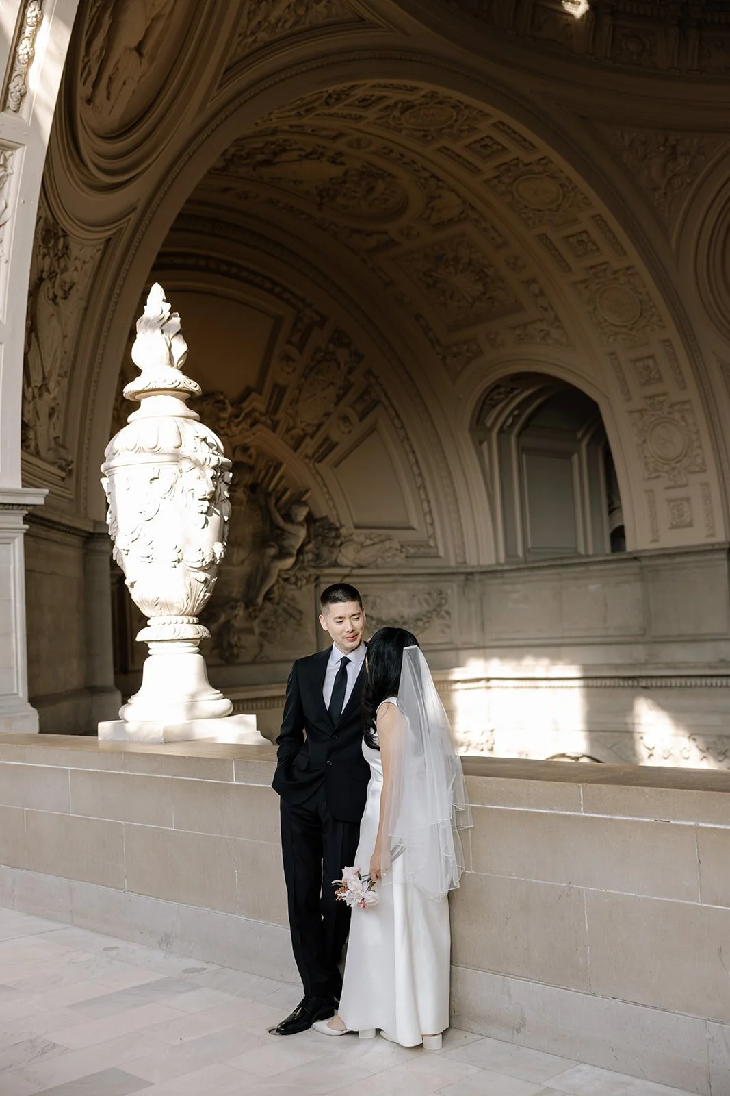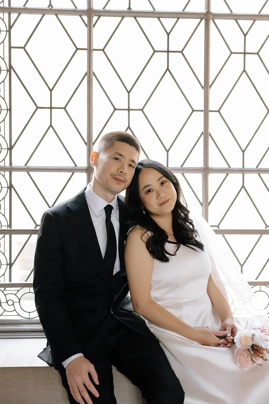 City halls have patterns - lines, symmetry, windows - that frame couples beautifully. The building does half the work. The rest is emotion.