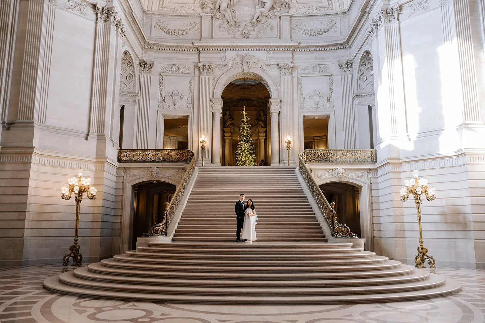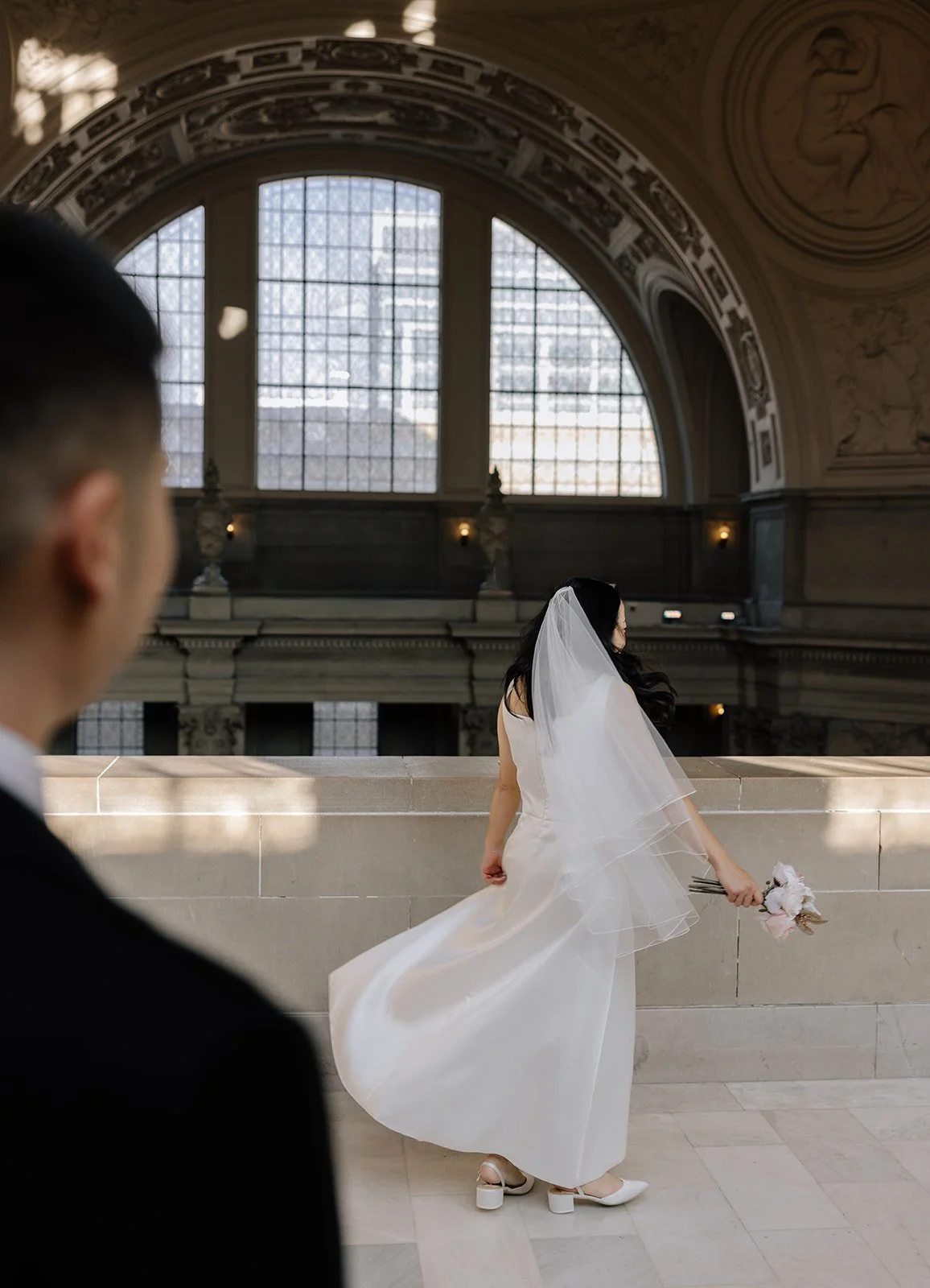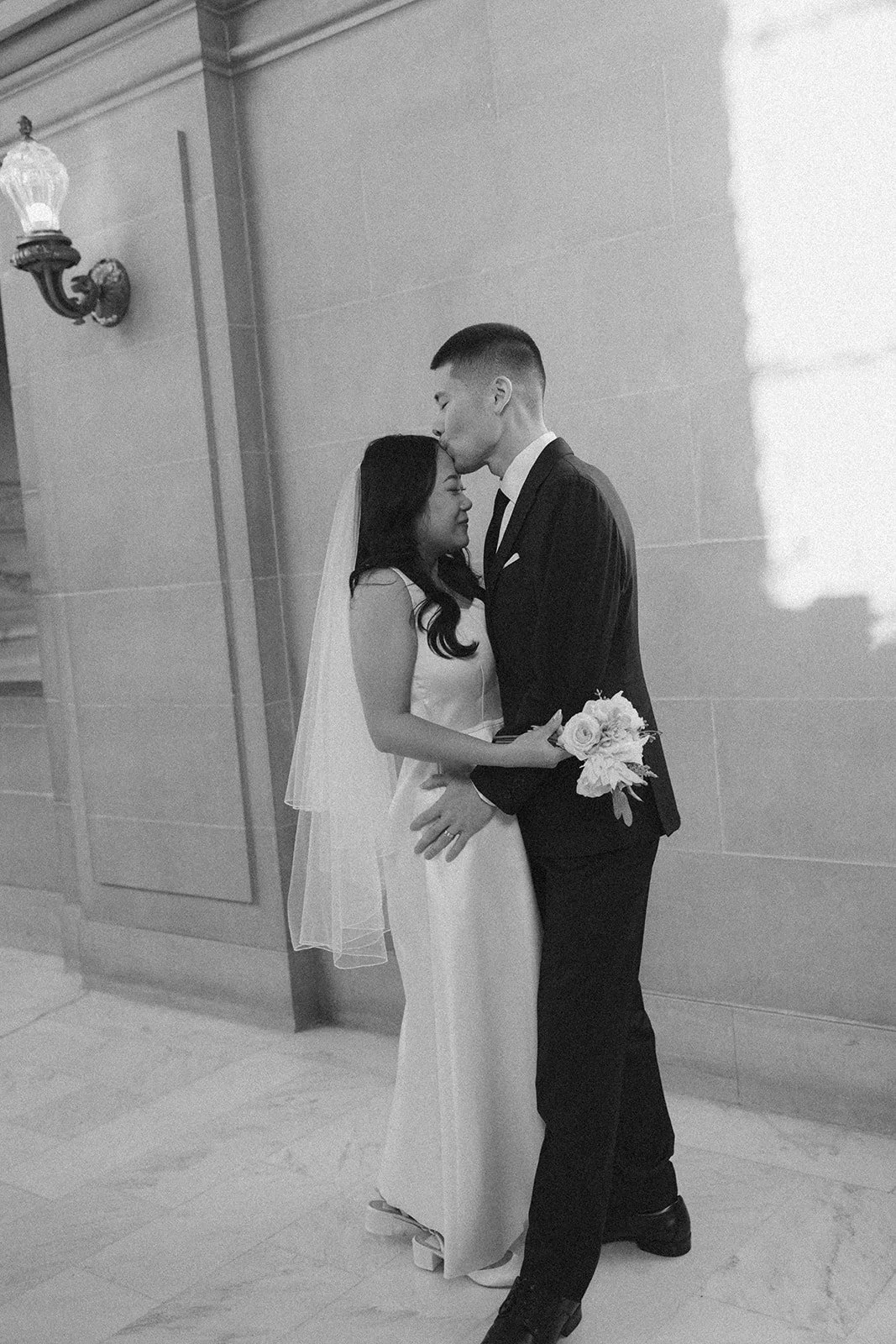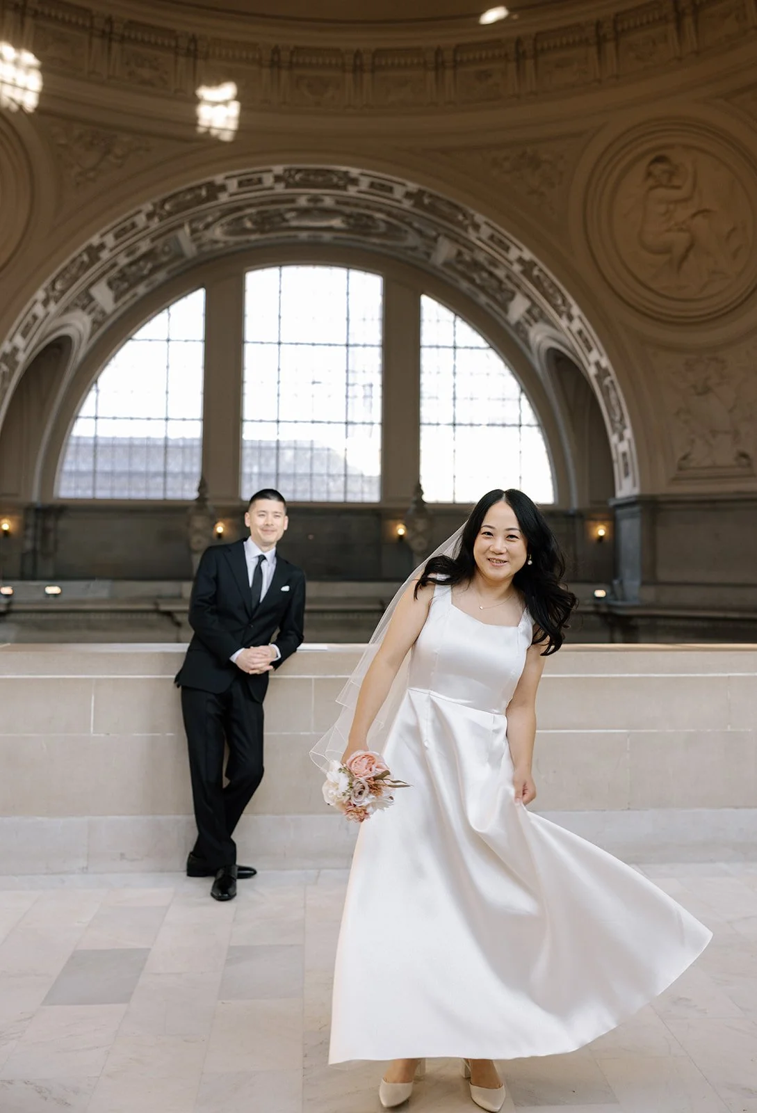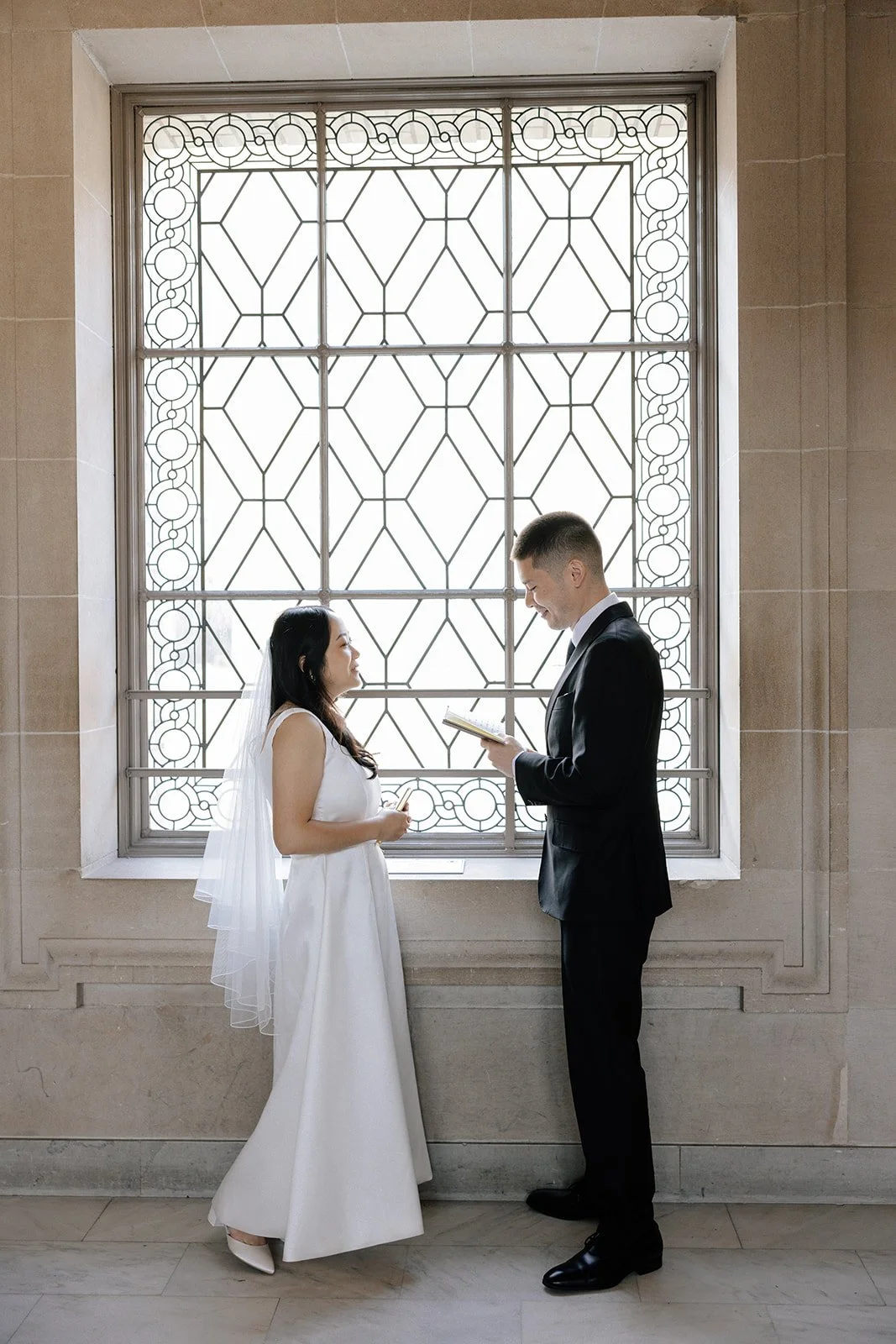 City halls have patterns - lines, symmetry, windows - that frame couples beautifully. The building does half the work. The rest is emotion.